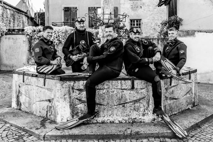 stellt sich die Tauchgesellschaft Estavayer-le-Lac während des laufenden