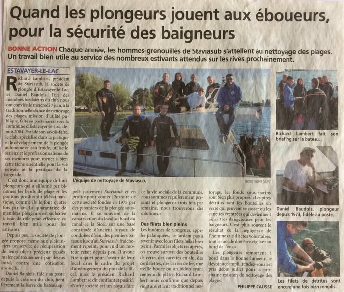 Notre société a un engagement d'utilité public annuel, à raison de 5 nettoyages de plages et alentours... Découvrez les articles de La Broye et Le Républicain de juin 2017.