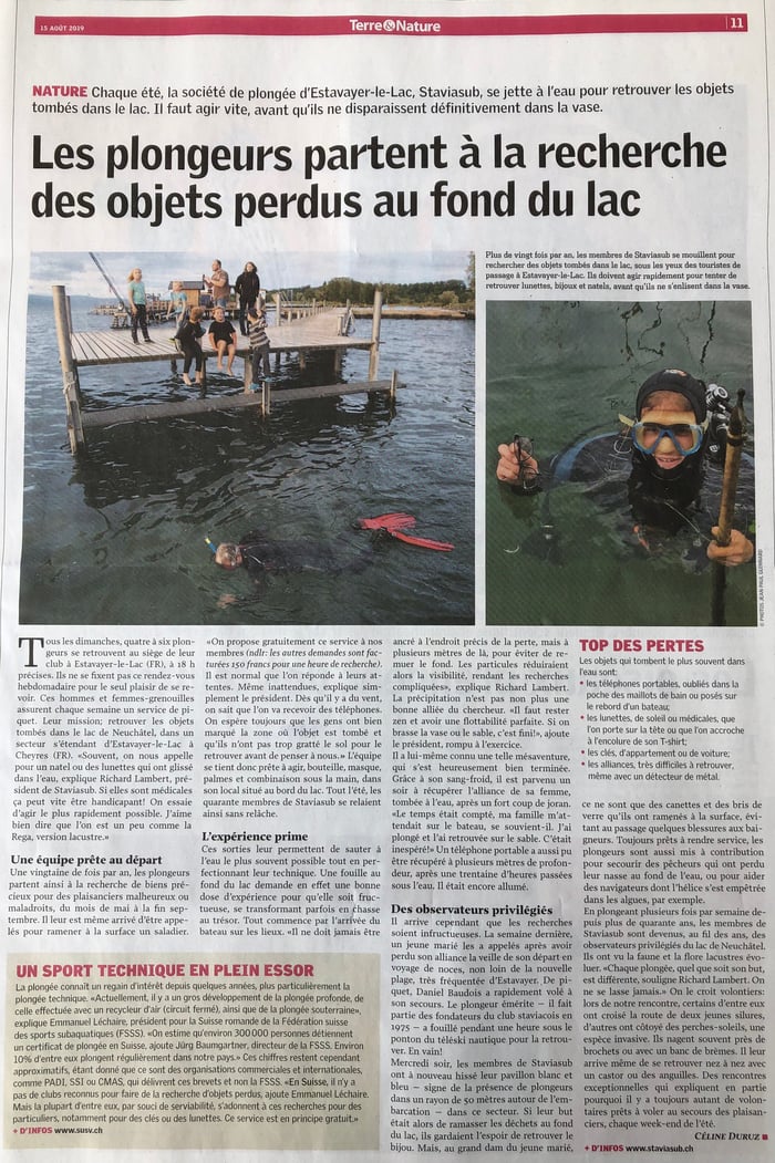 le journal "Terre et nature" s'intéresse à nos activités de nettoyage de plage et recherche d'objets perdus...